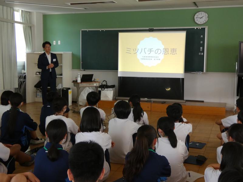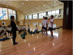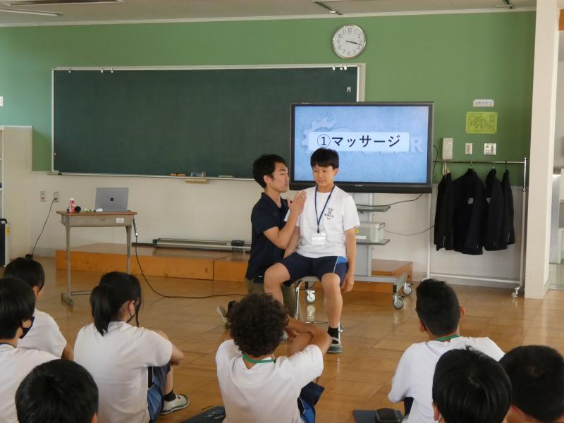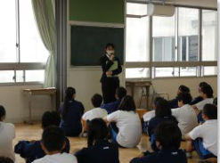 2年5組を対象に、豊橋商業高校の3年生から、プログラミングをもとに車を動かす方法を教えてもらいました。
