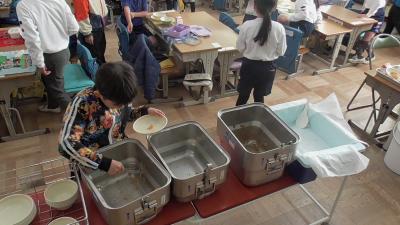祝・「食缶オール空っぽ!1年生」 給食初日「マーボー豆腐」