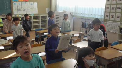 各教室を回っていると1年生からも「負けないで」の元気な歌声が聞こえてきました。1年生らしく、6年生らしく、それぞれの子どもが自分らしさを表現してくれていることをうれしく思いました。すべての子どもたちが、今年も1年間がんばったことを実感して、新しい年、3学期を迎えることができればと願っています。