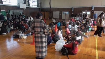 磯辺校区子ども会が主催する「豆まき会」が行われました。例年、たくさんのお菓子を用意していただけるので、子どもたちの期待は大きく膨らみ、ワクワク感も爆上がりのはずですが、さすが磯辺っ子、ちゃんと学年2列で順番を待ってくれていました。お行儀よい磯辺っ子です。