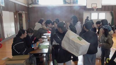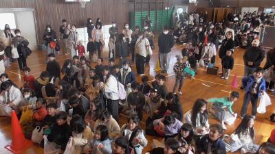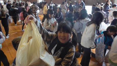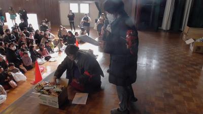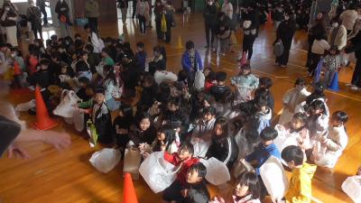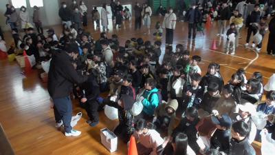 会終了後、お菓子のいっぱい入った袋を下駄箱で見失った子がいて、一緒にしばらく探しましたが、なかなか見つかりませんでした。「間違って持っていかれたかな?」とあきらめかけたころ、その袋はちゃんと本部に届けられておりました。とってもいいエピソードに心がほっこりしました。いそべっ子には、きっとたくさんの福が来てくれることと予感しています。よい春が迎えられそうです。