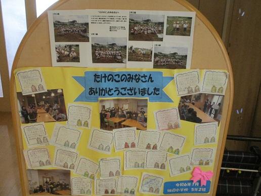 ボランティア委員がアルミ缶回収を行っている隣では、給食委員が、今日の給食メニューを掲示板に示してくれていました。今日はリクエストをして、特別に「きくらげ」をイラストで表現してもらいました。委員会の仕事を責任もって行ってくれる子どもたちに感謝しています。今日もおいしく給食をいただき、全校児童が気分上々でした。