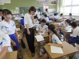 7月25日(木) 7月12日(金)のHPでお知らせしましたが、喜寿苑での「エミッ子ひろば」に小学生が参加するので、そのお手伝いやお年寄りのかたとの交流をするボランティア(夏休み期間中・お盆期間・土日祝を除く)を中学校で募集しました。1年生から20名、3年生から2名の参加希望がありました。のべ108名が参加し、一番多い生徒は19回も参加してくれます。子どもたちのやる気が本当にうれしいです。どんな経験ができるかまだわかりませんが、小学生やお年寄り、そして、施設の方々との交流は必ず子どもたちの成長につながるものだと信じています。