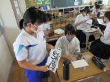 7月30日(火)の午後から喜寿苑ボランティアの様子を参観に行きました。この日は、1年生が2名参加してくれていました。今回は、小学生との交流で、一緒にサッカーやドッジボール、お菓子作りなどを行いました。なかなか使った遊び道具が自分たちで片付けられない小学生に対して、「おやくそく」と書いた掲示物を中学生が作ってくれていました。帰る前に小学生に説明する予定だと話してくれました。気がついたことをすぐに実行できる中学生の姿はとても立派でした。また、暑い中、元気に一緒に遊んだり、できないことを手助けしたりする中学生の姿もありました。大きいお兄さんに遊んでもらってとってもうれしそうでした。施設のかたからは、「中学生の子のおかげで助かっています」という言葉をいただき、「さすが中学生!」とうれしい気持ちになりました。(この日の写真がなくてごめんなさい)