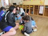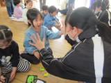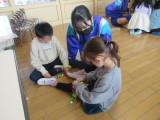 中学生も一緒に遊ぶ中で、遊び方を工夫し始め、園児たちを楽しませることができていました。フェルトで作ったボール一つでも、上手に園児を喜ばせていて驚きました。