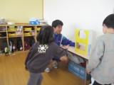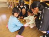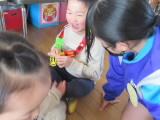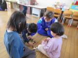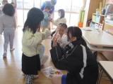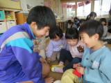 2月27日(木)の2時間目に3年生が家庭科の授業で作ったおもちゃを持って保育実習に行きました。前芝保育園の年少・年中・年長のクラスに分かれて、一緒に遊びました。最初からなついてくる子もいれば、遠くから中学生を見ている子もいましたが、時間が経つにつれて、中学生が作ったおもちゃで楽しく遊んでくれました。