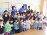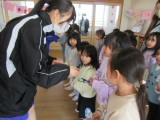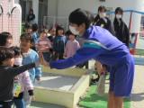 最後は、中学生が折り紙で作ったメダルやお雛様などを園児にプレゼントしました。とっても喜んでくれていました。帰るころには、園児のみなさんが名残を惜しんで、ハイタッチをしたり、窓から手を振り続けてくれたりして、お見送りをしてくれました。
