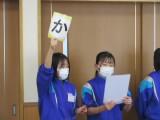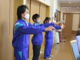途中、「ぱ」や「か」などの音を発声して口の運動をするトレーニングを行い、4人で並んで進行しました。