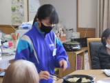 今日は、喜寿苑の忘年会の日でした。鍋に入れる具材の準備や野菜をゆでたりお米を炊くこと、机を消毒してお皿を配るなど、4人で手分けをして、指示にしたがいながらテキパキと働いていました。