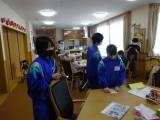 お昼の放送で生徒会長が全校生徒に呼びかけましたが、今日は思うほど募金が集まりませんでした。生徒会長から、2回目のお願いの呼びかけを行いたいという申し出があり、お昼の放送で再度募金の協力について熱く語ってくれました。また昼放課には、生徒会長と「どうたくん」の二人で各教室や職員室で募金の呼びかけを行ったり、授業後には小学校の職員室にも出向き、直接先生がたに協力を呼びかけてくれました。