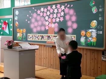 校長と担任に保護者のかたから花束をいただき、ありがとうございました。
