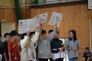 今回は、「全校のみんなに大村小のことをいろいろ知ってもらいたい」という思いから○×クイズが行われました。