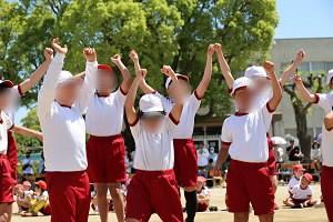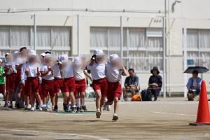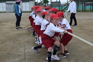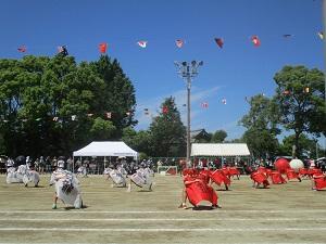 さわやかな青空の下、運動会が行われました。どの学年も赤が勝ったり、白が勝ったりとてもいい勝負が続きました。「まてまて! 大村のしっぽたち」(しっぽ取り)の競技は、4回戦目は5,6年生がルールを考えました。みんなで大将を守ったり、チームで攻めたりとなかなかの頭脳戦でした。暑い日でしたが、子どもたちの心も熱く盛り上がった運動会でした。