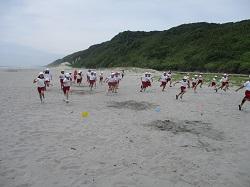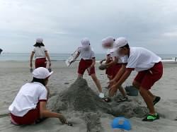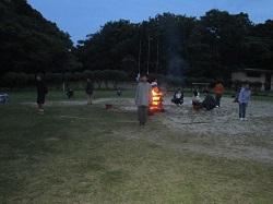 1日目は外で活動できました。砂浜では高い山づくり競争。班で協力し合うことができました。飯ごう水さんでは、マッチで火をつける体験を全員がしてからカレーとご飯を作りました。18時半からのキャンプファイヤーはまだまだあたりは明るかったですが、それぞれの班が考えたスタンツを楽しみました。