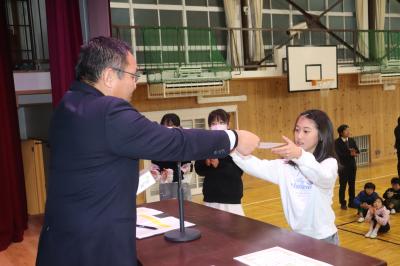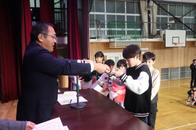 2学期終業式の前に,競書大会や長距離走大会の表彰を行いました。