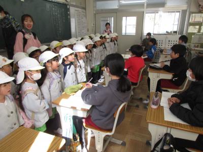 近隣の園児のみなさんと1年生が交流しました。1年生もよきお兄さん、お姉さんとして活動しました。給食もいっしょに食べました。「もうすぐいっしょにべんきょうするよ」心で伝えながら交流しました。きっと伝わったと思います。