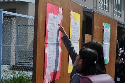 2年生から6年生は、新しい学級や担任の先生の発表がありました。体育館は、期待と緊張に包まれていました。
