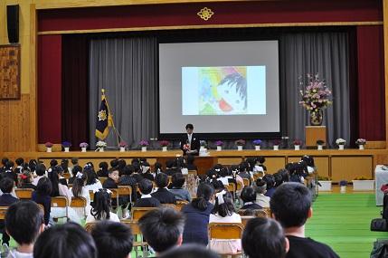 校長先生からは、多米小学校の合い言葉「Besic & Challenge 2.0 ~まずは自分で そしてみんなで~」