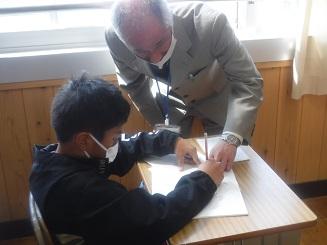 昔の学校の様子を、今もな昔の姿が残る教室でお話を聞きました。古多米は、戦争が終わる直前に、地域の方の熱い思いから建てられたことを知りました。このような体験ができるのは、多米校区ならではです。貴重な文化遺産の残る多米校区。地域と連携したわくわくする授業を展開しています。