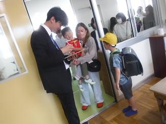 校長先生方からは、歓迎の言葉と、家族をテーマにしたあたたかい絵本の読み聞かせがありました。大切な家族に見守られながら、多米小学校1年生の新しい生活がスタートしました。