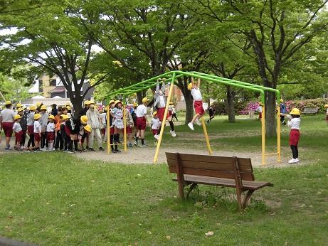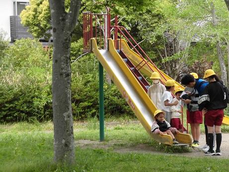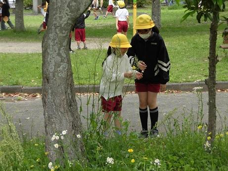 多米公園では、遊具で遊んだり、鬼ごっこをしたり、お花を摘んだり・・・興味のある遊びでみんなで力いっぱい交流しました。その中で、6年生が1年生に遊び方を教える姿、安全に気をつけるように声かけをする姿、外国籍の子に通訳をしながら話す姿、目の高さを低くして話しかける姿など、異学年交流ならではの学びがありました。遊びや体験、人とのかかわりの中から学ぶことの大切さを実感できました。