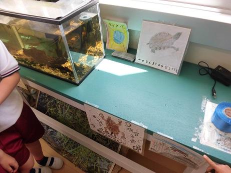 休み時間には生き物の好きな子どもたちが「かめるんが隠れたくなる場所はどこだろう」「かめるんは元気かな。ご飯は食べれているだろうか」校内を探し回る姿がありました。