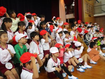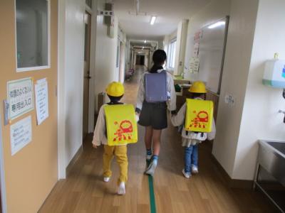 <抜き打ちで地震の避難訓練があります。いつ地震がきても対応できるように、準備をしておきましょう。「自分の命は自分で守る」のです>