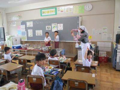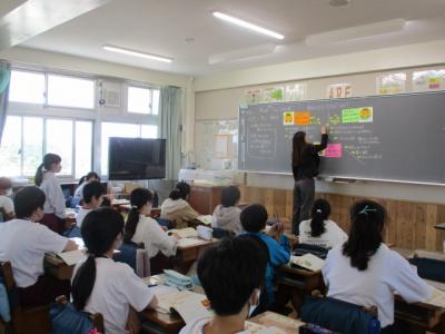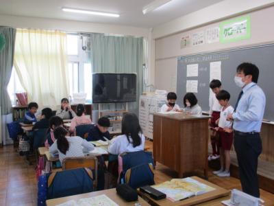 <最後は、出前授業の感想を伝えました。みんな笑顔でとても楽しかったようです>