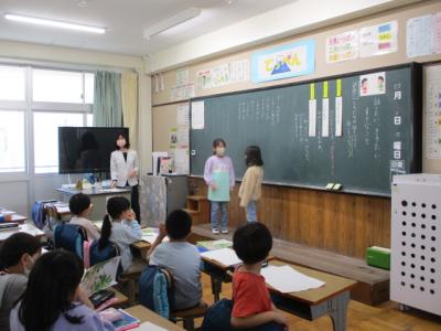 <2年生:生活科「まちたんけん」で、見学したり、調べたりした結果を発表しました。一生懸命に練習して、立派にできましたね>