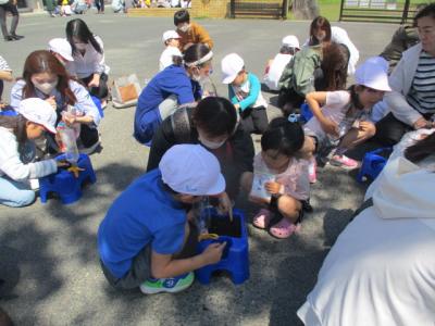 <お礼の言葉を言った後も、液体窒素に興味津々の子どもたち>