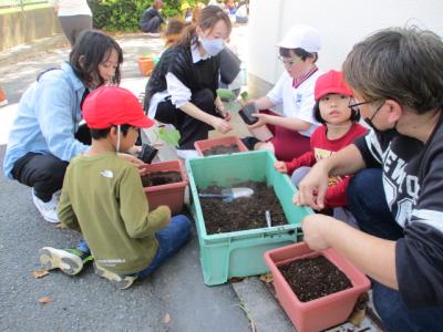 <ボランティアの保護者のみなさんが準備と片付けをしてくださいました。本当にありがとうございました。実験のお手伝いもしていただいたおかげで大成功でした!>