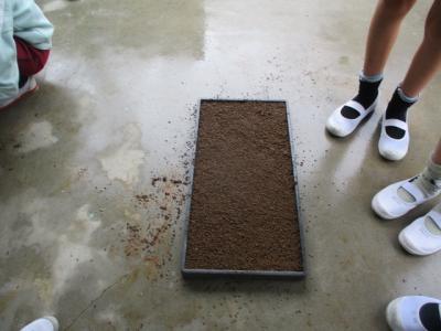 <あさりを獲る漁師さんから、漁の工夫や大変さを聞きましたね。マンガという道具は、とても重くて持つのも一苦労です>