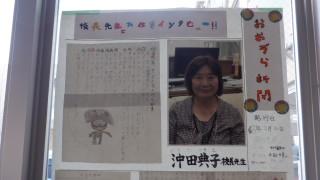 2学期におおぞら3、4組の子が、国語の時間に新聞を作るということで校長室にインタビューきました。私が若い頃、学校が水害に遭ったことなどを、インタビューをもとに上手にまとめ上げました。6年生を中心に文を考えたのですが、本当におもしろい記事になっています。また、キャラクター的な、彩りきれいなマークも描くなどして、素敵な新聞に仕上がっています。南校舎の階段近くに掲示してありますので、参観会にいらしたときにぜひ読んでみてください。
