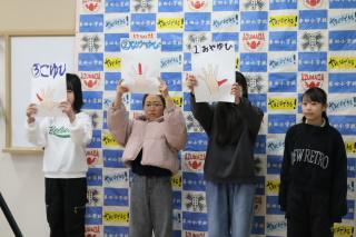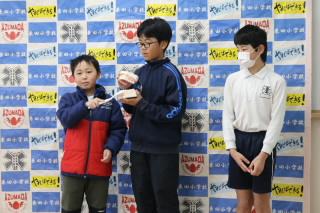 1月27日 給食委員会の発表を行いました。全国給食週間(1月24日~1月30日)にちなんで、マナーや感謝して給食を食べようと呼びかけました。また、学級で給食カルタを考えてほしいと<「い」…いのちに感謝して食べよう><「か」…完食したら元気もりもり>など例を挙げて提案していました。各学級でどんなかるたができるか楽しみです。