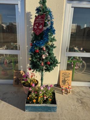 子どもたちのために用務員さんが作ってくれた素敵なクリスマスツリー
