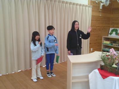 本日午後、おはなしのへやのみなさんによる、毎年恒例の「クリスマス会」が行われました。希望児童が参加しますが、本当に多くの児童が毎年楽しみに参加しています。