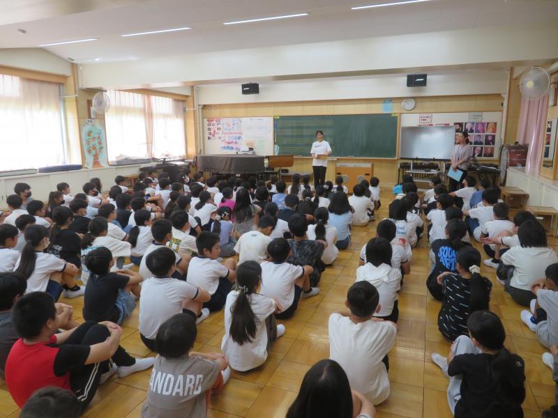 9月2日の2時間目に、音楽室で学年集会が開かれました。子どもたちは、修学旅行についての話などをとても静かに聞いていました。文化芸術活動や修学旅行など、2学期には公共の場で活動をすることが多いので、飯村小学校の代表としてがんばっていこうと気持ちを高めました。会の始めと終わりでは、元気な声であいさつもすることができました。6年生のやる気を感じました。