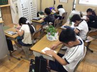 初めての「理科スケッチ」に子どもたちは集中して取り組みました。身近な植物や昆虫をよく観察し、葉脈や羽の形など、丁寧に描きました。じっくりと見つめることで、茎の太さや昆虫の足の節など新しい発見や不思議に気づき、理科への興味を更に広げることができました。