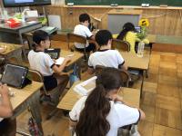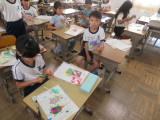 2年生は図工の時間に造パラの作品づくりに取り組んでいます。図鑑やタブレットで動物について調べて下書きの絵を描きました。セロハンを絵の形に合わせて切り、色とりどりの作品を作ることができました。