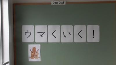 子どもたちに「がんばれ!」の隠れたメッセージを、おいしい「マーボー豆腐」とともに調理員さんたちの思いが子どもたちにも届き、1年生の子どもたちも笑顔いっぱいで給食を食べていました。