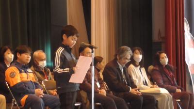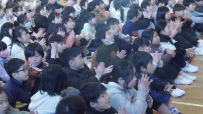 子どもたちは「ありがとうの花」の歌声で、いつもお世話になっておるボランティアの方々に感謝の気持ちをお伝えしました。お世話になった方々への思いがこもった、いつも以上にすてきな歌声が体育館に響き渡りました。