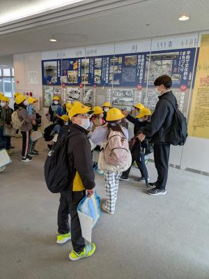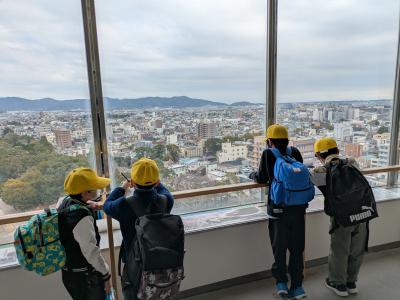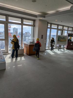 3年生は2月17日に消防署や市役所での校外学習に出かけました。朝から一緒に同行したかったけれど、用があってそれがかなわず、泣く泣く午後の市役所訪問におじゃましました。市役所13階では、東西南北を確認しながら、市の全域を見て学んでいました。「どっちが南か?」などと質問し合いながら、学びを深めていました。