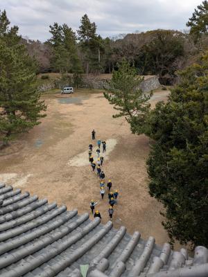 市役所と吉田城址を2チームで交代しながら見学を進めていました。お濠や石垣の説明を受け、鉄櫓が15時まで開館していたので、館内も見学することができました。今日も3年生とともにいっぱいまなぶことができました。