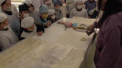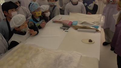 続いて「にくまんぱん」です。肉の具だけ食べてもおいしそうですが、そこは我慢します。今度はまん丸に成形したパン生地の真ん中に、餡をのせます。茶巾絞りのようにして、しっかり真ん中を閉じてくださいとのことでした。そうしないと「肉汁があふれてしまう」とのことです。「あふれちゃってください」と心で叫びました。