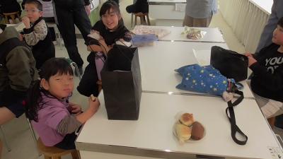 web会議が迫っていたので教室を出ようとすると、講師さんが「校長先生、あと2分待ってください」と声をかけてくださいました。「磯辺小の校長になってよかった!」と改めて感じました。5年児童が作成した「ぼったくりベーカリー」にパンをお供えして、おいしくいただいました。今日もよい1日となりました。