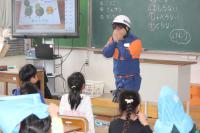 また、指導に先立ち、1年生の各学級では消防団の方々が「お・は・し・も」の大切さについて、わかりやすく話していただきました。