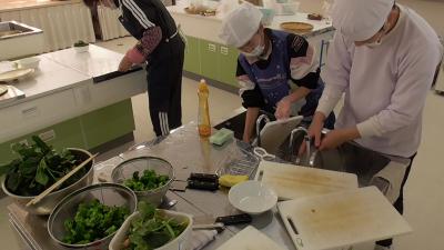 6年生が「奉仕活動」でがんばっている様子を見て回っていると、南校舎3階からおいしそうなにおいが漂ってきました。ひまわり学級の上級生の子どもたちが、校内で育てた野菜を使って、カレーを作っているところでした。大きく育ったホウレンソウを見るとよだれが出てきそうになりました。1日しっかり寝かせて、この日参加していない1,2年生や6年生も含めたクラス全員で、ほうれんそうカレーを楽しみました。すてきな上級生のみなさんでした。