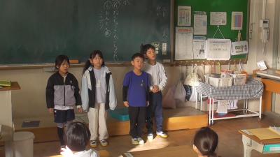お互いの「お店屋さん」を体験し終えたあとは、終わりの会で行う「小学校生活の紹介」のリハーサルも行っていました。磯辺小に5年間一緒に通うことになる新入生の入学をとっても楽しみにしている1つ年上の頼もしい先輩たちです。