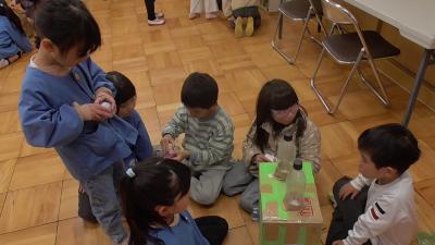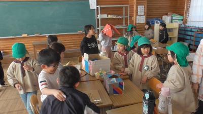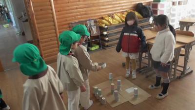 立春の今日、1年生が長栄保育園、磯辺保育園の年長児をお招きして、「遊び屋さん」の交流会を開催しました。校区にある両保育園の子どもたちとは、5年生が保育園を訪問したり、小学校の運動場で一緒に走ったりするなど、様々な交流を重ねており、すてきなご近所づきあいをさせてもらっています。小学生、園児ともにリラックスして、交流を楽しんでくれている様子でした。1年生も、そして私も、年長のみなさんが1年生として入学楽しみにしています。
