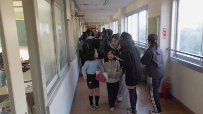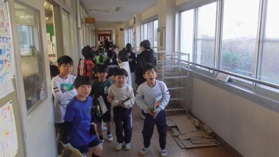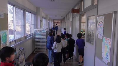 2月10日の2時間目に通学団会を開催しました。1年生児童は、各通学班の班長や上級生に1年生を通学団の会場にエスコートしてもらうため、各教室でお出迎えを待っています。通学団会ですら、ペア遊びのようなワクワク感を感じているようにとても楽しそうです。そんな様子は日ごろの班長との関係が良好であることを物語っています。いつも下級生が安全に、安心して徒歩通学できるよう配慮してくれている上級生をありがたく思っています。